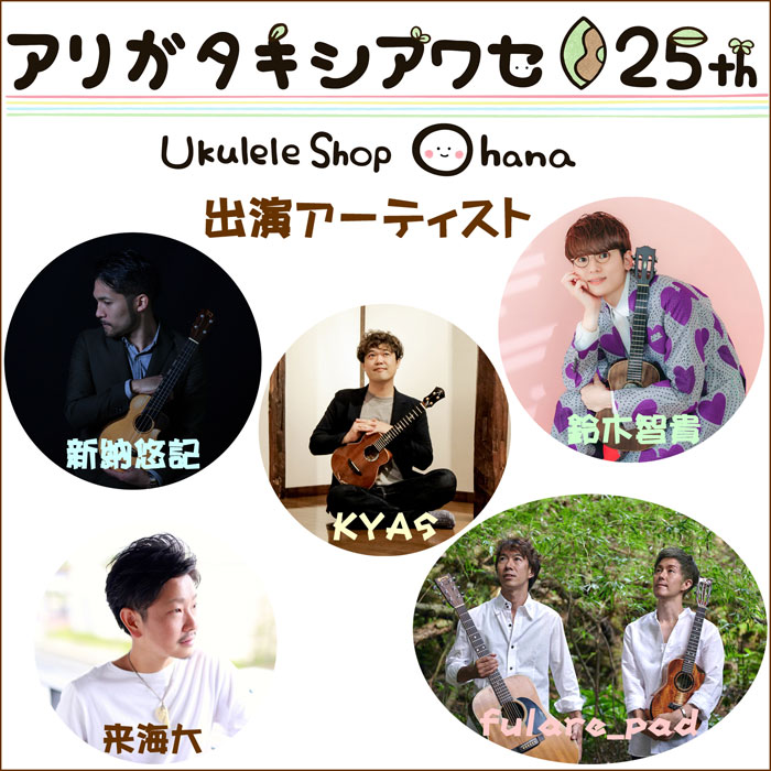 | ウクレレショップOhana 25周年記念イベント アリガタキシアワセ 25th 出演アーティスト |