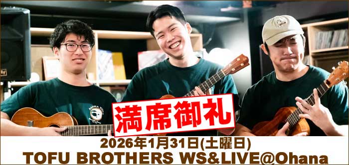 | ☆Tofu Brothers ウクレレワークショップ&Live@Ohana☆ | |||||||