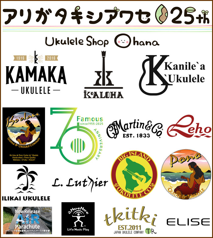 | Kamaka, KoAloha, Kanile'a, Ko'olau, Famous, Martin, L.Luthier, ILIKAI Ukulele, Leho Ukulele,ELISE, BIG ISLAND, Pono, tkitki, AIR, a Nue Nue, |